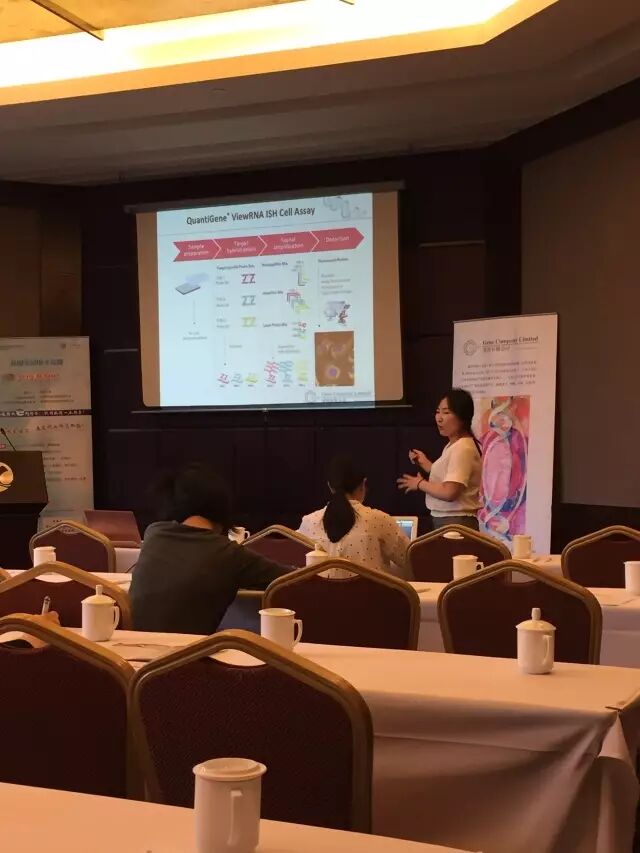 首先由基因有限公司产品经理姜玮瑜分享了题为:突破NGS局限,第三代测序即单分子实时(SMRT)测序整合光学图谱无限趋近基因组真相的主题讲座。结合具体的应用案例展示了SMRT测序技术在基因组de novo组装、基因组各种变异分析、全长转录本测序以及碱基修饰分析方面的应用;同时介绍了达到单个DNA分子分析的基因组光学图谱技术,还原基因组的真实面貌,解析更符合实际的基因组及SV等变异数据。 第二个主题:定量Western Blot金标准——LI-COR Odyssey精准数据完整解决方案,由基因有限公司产品经理李春燕进行介绍。分享了 Licor Odyssey作为近红外荧光成像技术的行业领导者,定量Western Blot金标准,如何通过技术优势提供准确定量、高重复性的WB数据,并且结合Revert总蛋白均一化、可指示上样及转膜等过程差异的OLI试剂等策略提供Western Blot精准数据完整解决方案。并且展示了Odyssey丰富的拓展应用:双色定量Western Blot,In-Cell Western ;无需同位素的EMSA ;蛋白芯片扫描等。 第三个主题:攻克样本制备的瓶颈——Covaris AFA样本处理技术,由基因有限公司产品经理李春燕进行介绍。AFA以其独特的聚焦式声波技术,凭借工作频率更高、聚焦式能量可控、在样本处理过程中维持恒定的低温、非接触避免样本交叉污染、重复性高、硬件使用寿命更长等优势,在组织匀浆、细胞裂解、生物大分子提取、ChIP染色质片段化、配套NGS DNA片段化、FFPE样本处理及核酸提取、ccfDNA提取等应用中均有出色的表现,真正让好的开始成为成功的一半。 第四个主题: 二代测序样本关键点之文库构建及质控,由基因有限公司产品经理顾敬楠进行介绍。为大家回顾了二代测序的发展历史,简要介绍了illumina平台测序的整体流程,并着重讲解了核酸提取以及测序文库构建中的技术要点,更后针对二代测序提出了我们公司相应的解决方案。 第五个主题:RNA单分子原位定量新时代——RNA 荧光原位杂交技术及其应用,由基因有公司产品经理赵珍珍进行介绍。本讲座为大家介绍了创新型单拷贝级别灵敏度的ViewRNA原位杂交技术及其应用,它将为科研人员开启细胞内定位RNA分子的新时代。其特异性的双Z探针设计避免了传统长链RNA探针的弊端,配以自身级联放大检测原理,可以高效敏感地检测到目标RNA。除了这些,ViewRNA还能做多重靶标共定位、RNA与蛋白共定位! ViewRNA原位图必将助力发高分高质量文章! 第六个主题:基因芯片技术在转录组学及转化医学中的应用及我司服务特色介绍。由基因有限公司产品经理成玲主讲。正所谓谈癌色变,肿瘤也一直是科学家们想要攻克的难题,基础研究中的发现也为肿瘤早期筛查、诊断及治疗乃至抗肿瘤药物的研发提供理论依据,推动生物标志物的研究成果从实验室向临床转化,该讲题给大家分享了众多文献中探索生物标志物的研究思路及其重要性,并介绍高通量转录组学技术整合转化医学应用的一经典案例。 交流会现场气氛活跃,各位老师与我们进行了热烈的交流讨论。很多老师表示听完近红外荧光成像技术后,觉得确实是比化学发光的方法更加可靠,愿意尝试。 DEMO机展示: 再次感谢各位老师莅临基因有限公司——2017 生命科学前沿技术巡回交流会!