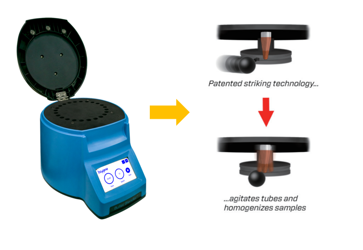 样品破碎常见方法 机械法 匀浆器 将剪碎的组织放入管中,再套入研杆来回研磨,上下移动,此法可用于一些小样本量的动植物组织。 缺点:通量低、易交叉污染 研磨 借助研磨中磨料(常用磨料为石英砂、氧化铝)和细胞间的剪切及碰撞作用破碎细胞组织。珠磨法属于研磨法的扩展,利用研磨珠与细胞悬浮液一起快速搅拌,由于研磨作用,使细胞组织破碎。 缺点:珠磨法破碎过程中会产生大量热能 超声波 强声波作用溶液时,气泡产生、长大、破碎和空化现象引起冲击波和剪切力使细胞裂解。 缺点:超声过程中产热大,超声产生的泡沫使生物大分子与空气接触增多,可能会导致部分生物大分子的降解 非机械法 反复冻融法 将细胞在-20度以下冰冻,室温融化,反复几次,由于细胞内冰晶形成和剩余细胞液的盐浓度增高引起溶胀,使细胞结构破碎。 缺点:反复冻融会破坏蛋白的空间结构 化学法 化学法是一类采用化学处理来溶解或提取细胞内组分的方法,常用的化学试剂有酸、碱、表面活性剂以及有机溶剂等。 缺点:化学法容易引起蛋白质失活,同时化学试剂的加入可能会影响下游应用 转头旋转击打共振破碎技术 >转头以每分钟几千次的频率对试管进行交替式击打,使研磨珠和样品管发生剧烈震荡,样品被彻底破碎和匀浆; >单次处理1-24个样品,每个样品管承受相同的击打力度,确保样品破碎效果一致。 无交叉污染和样品损失 >独立封闭式匀浆操作,避免样品交叉污染; >无探头或刀片,无清洗部件,无样品损失。 避免生物大分子的降解 >采用低能耗小功率电机,样品破碎前后温差只有几度; >独特的空气冷却技术,避免生物大分子降解,得率好,重复性高。 优化好的Protocol >不同类型样本提供优化的Protocol,简化实验操作,无需反复摸索实验条件,保证实验结果重复性; >百余种经反复实验优化的Protocol。请参照:www.baygenebiotech.com.cn 可提供不同种类的研磨珠 >可提供针对不同样品的不同尺寸大小,灭菌或未灭菌的玻璃珠、氧化锆珠、硅酸锆珠、钢珠、不规则形珠子。 操作简单,无需专人指导 >只需将珠子和缓冲液与样品一起放入标准管,管子放置在仪器内,选择时间和速度,并按下启动即可。 现仪器可以免费申请DEMO试用! 更多相关的产品信息可添加技术人员的企业微信。
