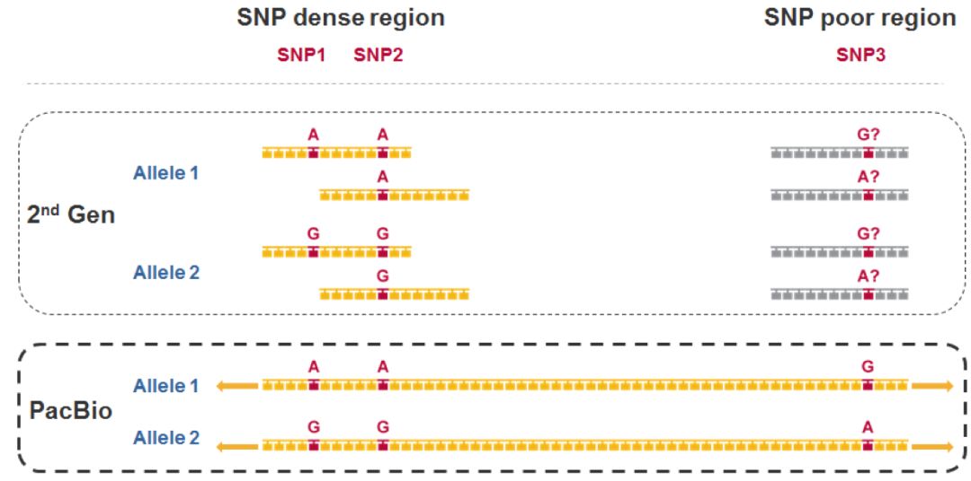 结构简单,却能成为更具杀伤力的生物之一。病毒变异的速度,并在变异过程中逐步培养起对已有药物的抗药性。病毒会在感染初期逃脱体内的免疫反应,通过快速的基因组整合而不被免疫系统识别,在受感染者体内存活下来并进一步繁殖。在一个感染者体内病毒由于突变和相互竞争形成的核酸序列结构高度相似的病毒群体,即称为准种(Quasispecies)。对该群体内每个病毒变体的高度变异的分辨能力对于了解进化、耐药性突变的发展和免疫逃逸至关重要。 自去年12月底武汉地区暴发的“不明肺炎”,中国疾控联合专家组上周宣布初步判定是由新型冠状病毒引起。1月12日,上海公共卫生临床中心联同多家研究机构在virological.org、基因库网站GISAID联合公布了其中一个武汉不明肺炎感染个案的基因排序。 测序技术的发展为病毒准种的研究提供了新的途径。但一代测序读长一般只有1kb左右,且通量低进而检测周期长,不能实现快速地检测。尽管二代测序可以提供高通量的测序数据,但是由于该平台读长短,无法准确获取该准种各病毒株的单体型序列,对病毒准种的单体型分析带来了很大的困难。 图1:短读长测序技术难以跨越病毒分子全长,无法准确获取病毒准种的单体型 PacBio的单分子实时(SMRT)测序技术经过多年的发展,已经使酶读长度增加到平均100 kb。通过优化和平衡酶读长与插入片段的长度,PacBio开发了一种基于CCS(Circular Consensus Sequencing)环形一致性的测序模式,产生HiFi Reads,能够在提供长读长reads的同时兼顾准确性。(参考往期文章:Nature Biotech文章验证了PacBio HiFi Reads进行基因组组装及变异检测的出色性能)PacBio单分子实时测序产生的HiFi Reads可以直接轻松跨越整个病毒基因组,准确分析病毒准种单体型。 图2:PacBio 高准确度长读长测序技术检测病毒全长,准确分析病毒准种单体型 接下来以两篇经典应用文章来给大致介绍下PacBio SMRT 测序技术在病毒研究中的应用。 埃博拉病毒 埃博拉病毒是单链RNA病毒。文章中,给感染埃博拉病毒的猴子注射抗体疫苗,然后定时采集经治疗后的个体血样,取其血清进行分析。开始利用二代测序技术对埃博拉病毒进行测序,发现了一系列单碱基突变,但是由于二代测序读长短,无法获取这些SNP在这些病毒变种分子上的排列,即无法获取单体型信息。作者用PacBio SMRT测序技术解决上述问题。以cDNA为模板,构建了2 Kb的SMRTbell文库,上机测序。通过PacBio SMRT测序技术建立了病毒的单倍体型网络,明确哪些SNP是位于同一个病毒分子上的。结果显示,从感染第14天的样本中检测到9个单体型(包含野生型),感染后16天的样本中检测到11个单体型,在感染后16天的样本中,野生型病毒只剩17.5%。 乙型肝炎病毒(HBV) 下面这篇文章是一位69岁的男性患者,于1991年因HBV相关性肝硬化接受了肝移植,但在移植后6个月被诊断出复发性HBV感染。该患者具有丰富的药物治疗经验,并且随着时间的流逝对LMV,ETV和ADV药物产生了耐药性。在15年的时间里不同阶段收集肝移植后的样本,提取DNA,进行HBV全长基因扩增,构建了3 Kb的SMRTbell文库,上机测序。通过分析HBV基因全长作者研究了患者肝移植15年内HBV病毒的变异过程,绘制了HBV病毒的进化树,在4个时间节点总共检测到95个HBV变异体。 这些HBV的变异体的产生进而导致患者可以躲避宿主免疫反应并在不同阶段对各类药物产生抗药性。 参考文献: 1. Kugelman J R, Kugelman-Tonos J, Ladner J T, et al. Emergence of Ebola virus escape variants in infected nonhuman primates treated with the MB-003 antibody cocktail[J]. Cell reports, 2015, 12(12): 2111-2120. 2. Betz-Stablein B D, Töpfer A, Littlejohn M, et al. Single-molecule sequencing reveals complex genome variation of hepatitis B virus during 15 years of chronic infection following liver transplantation[J]. Journal of virology, 2016, 90(16): 7171-7183. PacBio SMRT测序技术因高准确度、长读长、单分子均一覆盖等优势已在各个方面得到广泛应用。除上述分享的病毒应用外,PacBio SMRT测序技术在与流行性疾病相关的细菌方面也有诸多的应用案例。PacBio SMRT测序技术除了很好地完成染色体基因组组装外,还能够对所含质粒进行组装,追溯质粒水平转移现象;容易跨越外源基因和宿主基因组整合序列,更准确定位移动元件在基因组上的位置。 往期相关内容回顾 基因有限公司作为PacBio公司在中国区的独家代理商,自2011年以来将PacBio第三代单分子实时测序技术引入国内,一直为国内用户提供专业的三代测序系统的安装培训,技术支持,应用培训与售后维护工作,赢得客户的一致好评与信任。基因有限公司将一如既往的支持越来越多的PacBio用户。