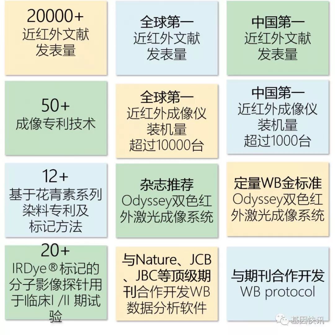LI-COR Biosciences公司作为近红外荧光成像的创始者和领导者,在近红外荧光成像领域已有25年的丰富历史,是名副其实的近红外专家。LI-COR与基因有限公司的终极目标是希望帮助您解决Western Blot实验中的问题,帮助您获得符合杂志发表的Western Blot可重复数据。 基因有限公司作为LI-COR产品中国区独家代理商,与LI-COR一起邀请您一同关注近红外荧光成像技术在Western Blot准确定量、磷酸化等蛋白修饰化研究、In-Cell Western、双色EMSA、蛋白芯片及光免疫疗法等方面的应用进展。欲进一步了解详细内容,请关注我们的官方微信“基因快讯”或联系您身边的基因有限公司工作人员。