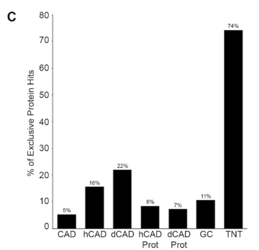 然后,挑出GCs的数据,将其与基于大样本方法得到的GCs的蛋白质组和转录组信息数据库进行比对。发现其鉴定得到的unique protien和数据库中的信息高度相关。进一步证实了建立在微量样本采集之上的LCM/MS系统的准确性和高度重复性。并且,在两组样本都鉴定到的193个unique protein中, 仅有11.4%没有在数据库中找到,后通过文献检索,更终证实其中仅有1%的蛋白没有足够的数据表明其GC定位或功能,而其他均与GC相关或功能一致。显示了LCM/MS方法的准确性以及用于鉴定新蛋白的潜力。