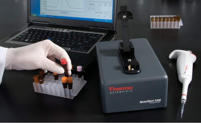 自我介绍 Hi,大家好,我是Thermo Scientific™ NanoDrop 3300,体型小巧可爱,如上图所示,我是一款多功能经济型荧光分光光度计。我将超微量技术拓展到荧光信号检测,能够进行400-750nm全波长荧光分析。 我测试样品量只需 1 μL,且能显著提高检测灵敏度,比传统荧光分光光度计高一个数量级。基于其先进的功能和分析选项,我可以实现较广范围的测量,包括日常 RiboGreen、PicoGreen 和 GFP 到先进的纳米颗粒和 FRET 分析。下面就请看我的主要优势与参数吧,希望能在您的实验上,贡献我的一份小小力量。 1、样品体积可低至 1μL,为其他应用和试验保留了珍贵的样品; 2、更高的灵敏度:可检测pg/μL范围的dsDNA ; 3、宽激发范围; 4、荧光发射的全光谱分析(400-750nm); 5、紫外、蓝白 LED 激发,涵盖宽波长范围; 6、可测量单样品的多种荧光基团; 7、同时提供光谱图和数据; 8、无需更换滤光片; 9、无需昂贵的单色器; 10、无需比色皿; 11、快速测量,2-10秒完成检测; 12、占用空间小、检测快速且易于使用; 13、可运行各种应用,可定制适合您研究的特定应用。 主要优势 1、样本体积:1-2ul; 2、光源:3组LED(UV365,蓝光470和白光500-650nm); 3、波长准确度:1nm; 4、波长精确度:< 5% CV (10 nM Fluorescein); 5、分辨率:8 nm (FWHM at Hg 546 m); 6、测量时间:小于10s; 7、检测浓度下限:1pg/ul; 8、检测物质量下限:2pg; 9、体积:20cm×15cm×12cm; 10、重量:3kg; 11、工作电压:5伏(可通过电脑USB接口供电,无需外置电源)。 技术参数 Thermo Scientific NanoDrop系列在超微量检测领域里,一直被模仿,从未被超越。Thermo持续专注于超微量分光光度计研发,不断精益求精,向着更加专业的方向迈进。NanoDrop 3300秉承了NanoDrop的样品基座设计,可用于广谱荧光分析。 厂家简介 基因有限公司为NanoDrop系列产品中国区合作伙伴。公司的宗旨是“专才为专家服务”,专业的团队为各大科研机构提供安装培训,技术支持,应用培训与售后维护一条龙服务,赢得客户的一致好评与信任。想要了解更多,请关注我们的官方微信“基因快讯”或联系您身边的基因有限公司员工。