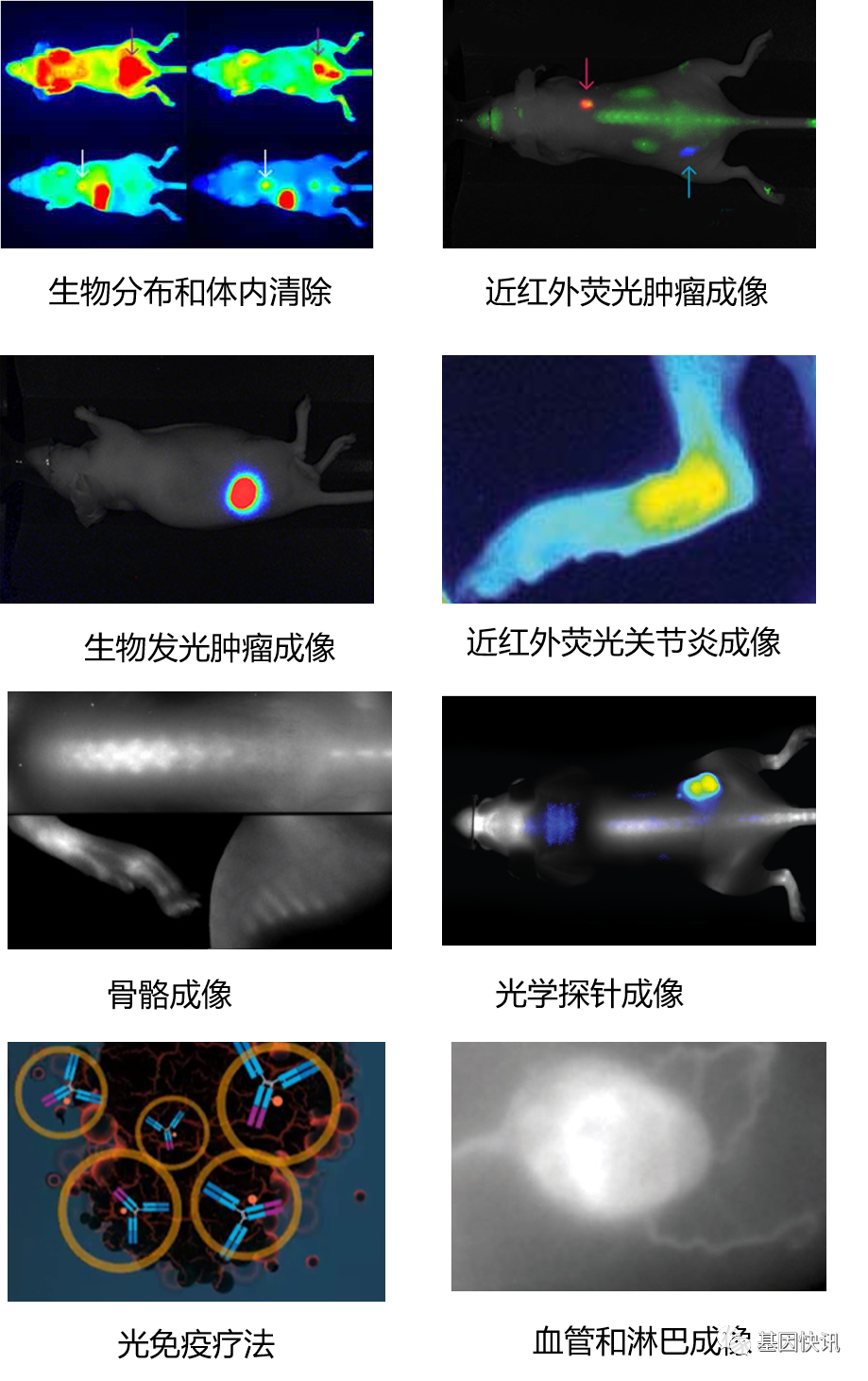 近红外光免疫疗法是一种新型的肿瘤疗法,偶联了近红外光敏剂的靶向特异性抗体,在近红外光的照射下,光敏剂吸收光子并将吸收的光能量转化为热量和活性氧,加以单克隆抗体药物的多重作用下,靶向杀死目标细胞,而不会对正常细胞造成危害。Pearl Trilogy小动物活体成像仪配合IRDye 近红外荧光光敏剂,能更好地应用于近红外光免疫疗法,全球知名的光免疫疗法领军人物-NIH的小林久隆团队发表在Nature Metheds 、Science Translational Medicine 上的的光免疫疗法文章就是使用的Pearl Trilogy活体成像仪。 如需了解更多近红外光免疫疗法的详细信息,请点击下方: 只要能在近红外荧光700nm和800nm波段可以被激发的材料,都可以利用Pearl Trilogy 进行近红外荧光小动物活体成像研究,例如各种纳米材料等。 LI-COR提供多种IRDye 近红外荧光染料可应用于临床试验 IRDye 近红外荧光染料已通过FDA和欧洲监管当局的DMF文件,可应用于临床,已经有多项IRDye近红外染料标记的试剂用于临床试验,也包括头颈部癌症的光免疫疗法临床试验。 丰富的近红外荧光光学探针 即用型的BrightSite™近红外光学探针,可以检测肿瘤、炎症、骨骼、淋巴以及血管等靶标并进行成像。也可以根据实验需求,利用近红外荧光染料标记蛋白、纳米等多种材料。