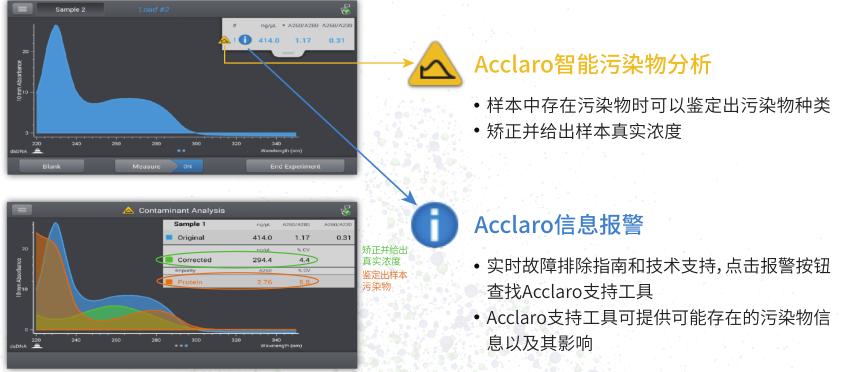 尽管做好了防疫常态化的准备,北京新发地的疫情反弹及严峻形势还是让人始料未及。新冠病毒检测及结果又一次成为社会关注的焦点。 新冠病毒检测有多种方法,包括核酸检测、抗体检测、电镜、免疫组化等。国家卫生健康委办公厅公布了针对新冠病毒的最新实验室检测指南,主要还是采用经典、成熟的实时荧光定量qPCR来进行鉴定。 qPCR检测流程 然而,就目前的数据来看,疑似病例的病毒核酸检测假阴性颇高(50%-70%)。其中原因除了病人病程、采集方式、样品送检方式(pooling)等,还有很重要的一部分来自核酸检测试剂盒本身。据了解,多个CDC批准的新冠样本核酸提取试剂盒都含有硫氰酸胍(GuSCN)和盐酸胍等组分。如果硫氰酸胍残留在样本中,不会明显改变核酸样本在260nm处的吸光值以及核酸测量浓度,因此使用普通的分光光度计检测不出可能的胍类残留。但是,残留的硫氰酸胍(GuSCN)可引起聚合酶变性,从而抑制qPCR反应,最终可能影响检测结果。 GuSCN不会明显改变核酸样本在260nm处的吸光值 增加 GuSCN浓度会提高Ct值 来自Thermo Fisher的NanoDrop One/OneC,系统内置Acclaro软件可以检测RNA样品中的GuSCN,帮助用户防止qPCR实验失败。 同时,NanoDrop Acclaro智能污染物分析功能可以鉴定样本中存在的污染物并矫正给出真实浓度。除了硫氰酸胍(GuSCN)和盐酸胍,对核酸的质控,还支持识别蛋白、苯酚等污染物。 最后要说一下,NanoDrop还是MIQE 操作指南推荐的对qPCR和RT- PCR进行核酸质控的实验方法。 注:MIQE是09年发表于临床化学杂志的一篇Review,它系统的总结了在qPCR实验中的问题和注意事项,规范了数据发表文章所必须的基础信息,使科研工作人员在qPCR实验时有规则可依。 介绍到这里,如果您的研究或者工作需要使用NanoDrop One/One/OneC智能超微量分光光度计来提升灵敏度或者数据规范性,可关注我们的官方微信“基因快讯”或者直接扫描下方的个人企业微信号与我联系。