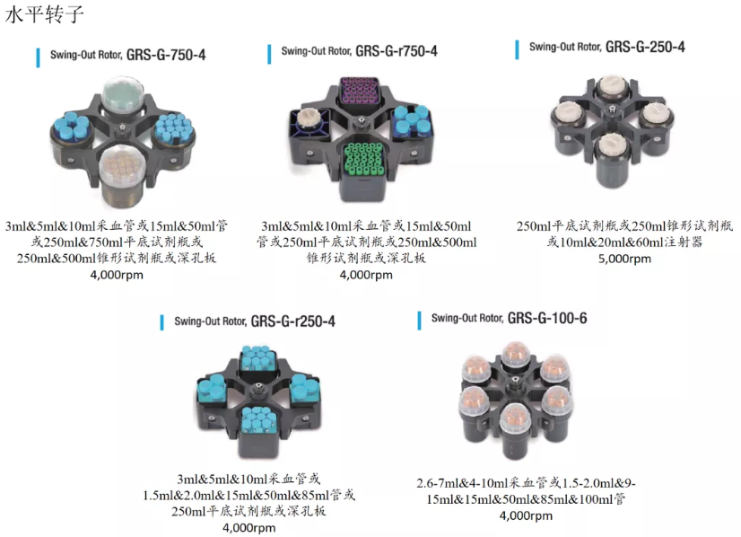 Ø 最大容量:定角转子:6x(250ml&15ml);水平转子:4x750ml;