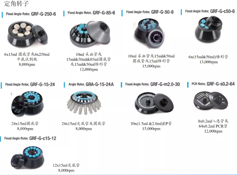 Ø最大转速/离心力:定角转子:15000rpm /25910×g;水平转子:5000rpm/5394×g;