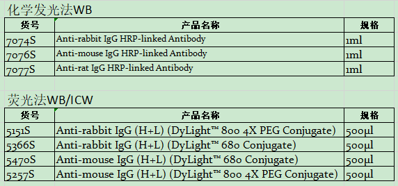 • S 或 L 包装的二抗(WB、ICW、IP、IHC、IF、F、ELISA、HCA)