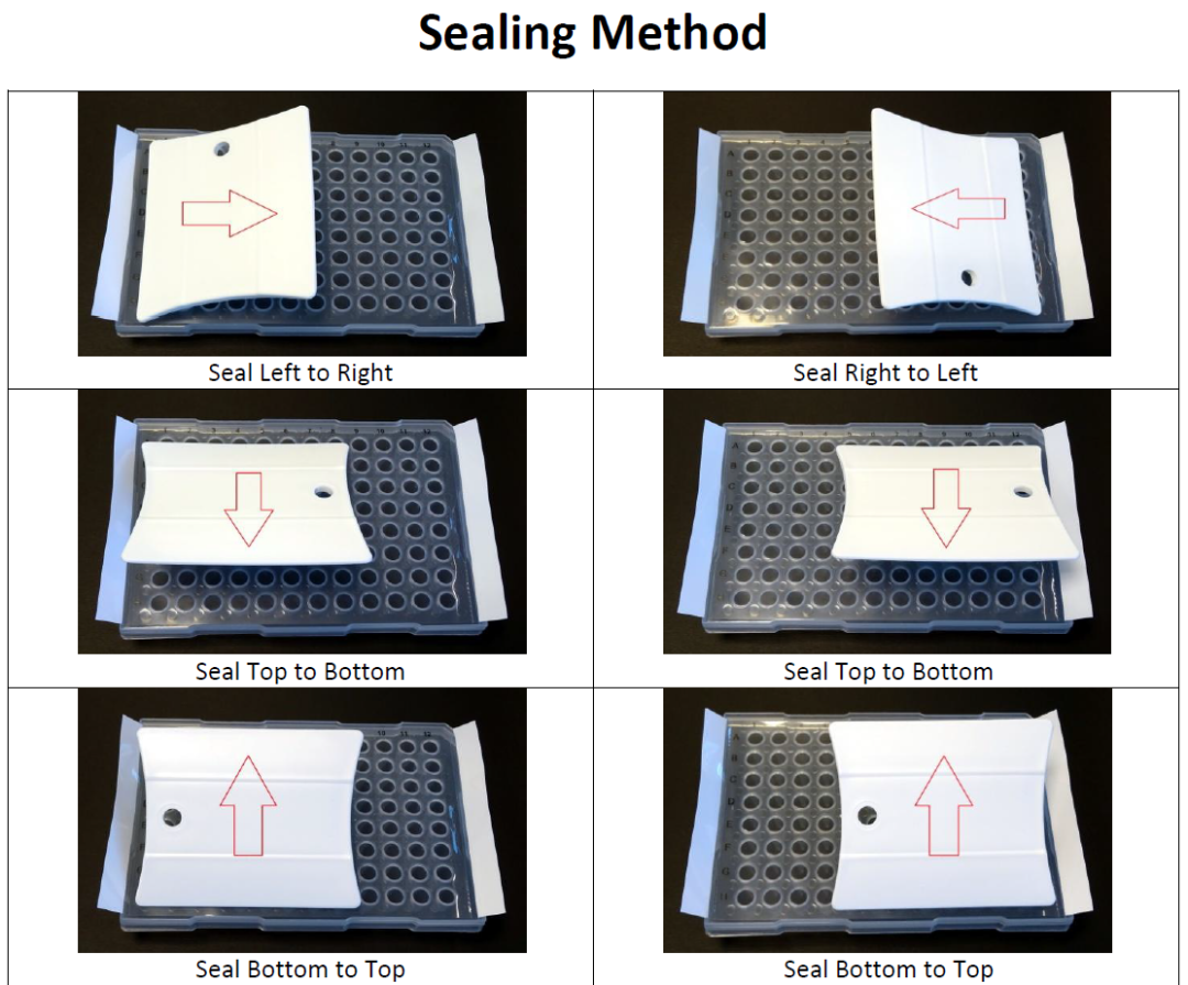 从自封袋中取出单张封板膜或封板铝箔,然后重新封好自封袋,以保持其中的无酶环境。 保持底衬面朝上,握住封板膜或封板铝箔。 在底衬的切线处向下折末端标签。 如果使用的产品为单端标签的封板膜或铝箔,则将衬纸部分除去,然后将封板膜或铝箔锚固到板上,使其密封在整个板上,然后继续除去衬纸。这种方法可以消除封板膜或铝箔产生的卷曲和回滚。 如果使用带有两个末端标签的产品,请以连续平滑的方式剥离中心衬纸。缓慢剥离内衬可以最大程度地减少卷曲。注意不要接触薄膜的粘合表面。 用双手抓住两端白色部分,将膜片降低到孔板上。 使用压膜板缓慢刮压封板膜或铝箔,使其密封到板上。此步骤应至少水平和垂直执行两次。施加足够的力对于获得良好的密封性至关重要。(请参见下方密封方法示意图) 将压膜板沿着孔板的所有外边缘刮压至少两次,确保施加坚定而持续的压力。 密封后检查平板,以确认薄膜/箔片与板之间是否紧密结合。封板膜或铝箔不应出现褶皱,如果观察到皱纹,则说明板未正确密封。同时还要注意,封板膜或铝箔不应向上延伸到板的侧壁上。对于边缘凸起的平板,由于封板膜或铝箔在板上的定位不正确,或者未撕去两端的接头,可能会发生这种情况。确认每个孔周围的粘贴痕迹,平板的整个表面(包括周边)都被密封。 将封板膜或铝箔正确密封到板上之后,沿切线撕下两端白色的接头部分,使平板呈下图状态。 最好在开始PCR实验前之前将密封的平板放置至少10分钟,封板膜的粘合力将随着时间增加。 将板转移到PCR仪上,运行PCR仪。 Plateseal,钻研自粘性封板膜近三十年,为用户提供用于PCR板、微孔板、8联管和深孔板的封板膜,适用于包括PCR、qPCR、ELISA、细胞培养、长期储存、自动化工作站处理等几乎所有的实验室应用。想您所想,让您用的更便利! 扫码 联系专品专员,索取试用装 qPCR用封板膜及封板铝箔,现已加入买二送压膜板活动,详情请点击“阅读原文”。