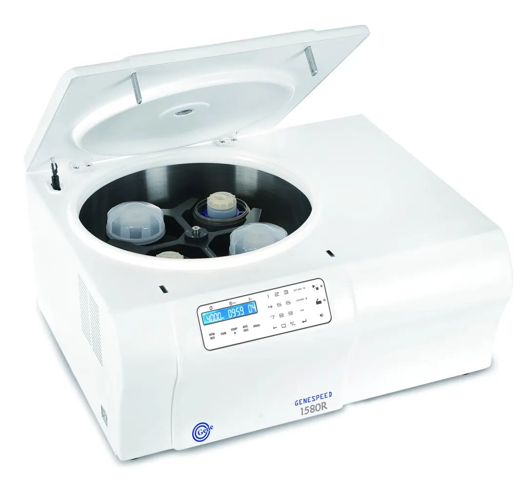 GeneSpeed离心机是基因有限公司自主品牌产品,全部按照IEC标准生产和测试,仪器质量和安全性有保障。从个人型迷你离心机到多用途离心机,从低速离心机到高速离心机,从常温离心机到冷冻离心机,从台式离心机到立式离心机,多种机型和转头可选,满足您不同的离心需求。 1580R多用途高速冷冻离心机定角转子最大转速/离心力为:15000rpm/25910g;水平转子为:5000rpm/5394g;定角转子最大容量为:6x(250ml&15ml),水平转子最大容量为:4x750ml。1580R有多至14种转子可选,可用于酚氯仿法DNA抽提、柱膜法核酸抽提、质粒抽提、RNA抽提、蛋白提取、细胞收集、简单离心、深孔板/PCR板离心、大体积样品制备等。满足您实验室不同通量、不同转速及不同实验类型的需求,让您拥有更好的体验。 较好的性能质量 Ø 全部产品按照IEC标准生产和测试 Ø 可靠运行转速误差在±0.2%之内 Ø 高性能压缩机,-20℃制冷,Fast cool快速制冷功能,降至4℃仅需5min Ø 稳定的软减速具有动态刹车技术 Ø 9级加速和10级减速 Ø 自动RPM/RCF显示切换 较好的安全性和坚固性 Ø 盖子双层或三层的结构,中层采用高强度钢板,减少噪音,改善安全性 Ø 安全门锁,确保门锁上后再开始离心 Ø 落盖保护,保证操作者和样品安全 Ø 自动转头识别,确保安全性 Ø 自动不平衡、超速、过热检测和报警 Ø 开盖后压缩机自动关闭,最大限度地减少结霜和防锈,延长寿命 Ø 紧急开锁装置,停电后可开盖 Ø 气密性转头和吊桶,防止污染 Ø 可高压灭菌和耐腐蚀的转子 较好的操作舒适性 Ø 高灵敏度触摸式按键或屏幕 Ø 瞬时、定时和连续运行3种时间控制方式 Ø 开始即计时或定速计时功能 Ø 自动RPM/RCF显示切换 Ø 可通过盖子上观察窗口查看实际运转 Ø 存储100个程序 Ø 离心结束后报警,且报警音可调 14款转子供选择 欲了解更多详情及应用,欢迎扫描下方微信二维码与我们技术人员一对一在线联系...... GeneSpeed离心机是基因有限公司自主品牌产品,凭借卓越的品质和极高的性价比赢得了广大科研工作者的普遍好评!同时,基因有限公司集二十年离心机销售与服务经验,对于客户选配咨询,售后服务及维修都有着丰富的经验和技术资源积累。想要了解更多,请关注我们的官方微信“基因快讯”或联系您身边的基因有限公司的工作人员。