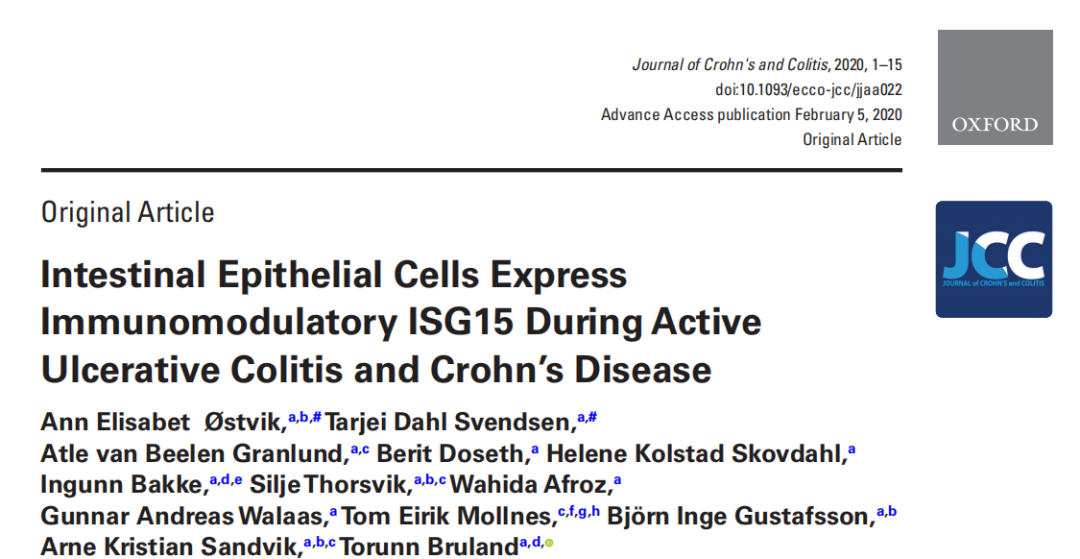 2020年2月5日,由Ann Elisabet Østvik等人在著名期刊《OXFORD》上发表了一篇名为“Intestinal Epithelial Cells Express Immunomodulatory ISG15 During Active Ulcerative Colitis and Crohn’s Disease”的文章,该文章主要利用激光显微切割系统获取人结肠上皮单层细胞(Intestinal Epithelial Cells,IEC),并通过转录组学进行数据分析,发现活动性炎症IBD(Inflammatory Bowel Disease,IBD)患者IEC可以分泌干扰素刺激基因15蛋白(ISG15),且表达水平比非炎症IBD患者高,对研究炎症性肠道疾病的机制和相关治疗手段有重要作用。