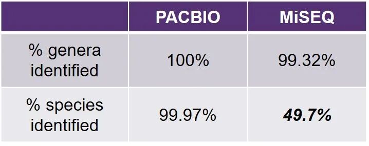 然而常用的基于NGS的短读长测序模式通常只是对特定可变区(eg.V3-V4)进行测序,所以在物种鉴定方面比较可靠的是分类到属水平,较少部分能分类到种水平。
