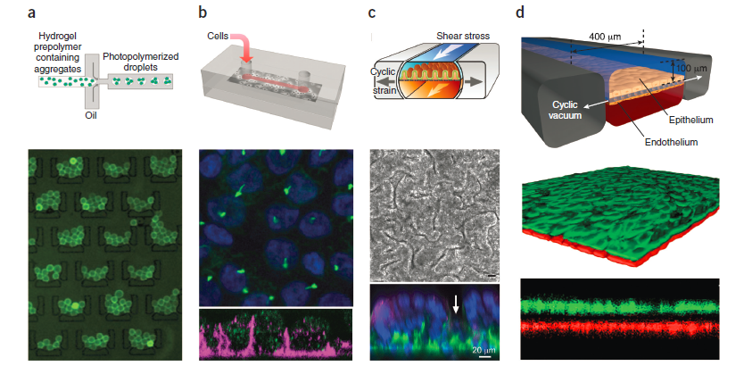 过去 在3D细胞培养概念刚出现的当时,不像现在一样有商品化的支架材料或者试剂盒。以前什么也没有的时候,大家也是煞费了各种心思,重力,离心力,磁力等等的都用上了。所以,最开始的3D细胞培养,形式都是以细胞球(spheroids)和微组织(microtissue)为主,只是建立方法上的差异。 Hanging drop (悬滴法):悬滴法是应用广泛、能较轻易快速获得3D细胞,而且无需特殊试剂或设备的方法。悬滴法主要是通过把悬浮细胞液滴在微孔板底部,再把微孔板上下翻转防止,让液滴悬挂着,让细胞在重力作用下,在液滴底部接近液-气的界面聚集成球[1]。 上面的方法虽然简单、低成本,但是建立的3D细胞模型的大小和生长速度差异较大,不适合高通量规模的实验,因此限制了其发展。 现在 Scaffold-based 3D culture methods (3D细胞培养支架): 支架法是目前较为常用的的3D细胞培养方式,原理主要是让细胞在不同材料支架中,以三维的形式生长、增殖和分化。常用的支架材料有天然来源的,例如来源于细胞外基质提取物做成的基质胶(Basement Membrane Extract),也有合成的生物兼容材料,如藻酸盐水凝胶。3D细胞培养支架较多应用于研究微环境生化对于细胞生长的影响,在干细胞研究中尤为重要[2]。 图1:(A) - (C) HepG2和MCF7在无支架和有支架下的生长情况;(D)96孔板中包被好的凝胶支架;(E)固体支架;(F)解离后的细胞。 Organoids(类器官):如果想要观察细胞群在组织中的发展过程,那类器官模型是您的不二之选。利用干细胞的分化潜能,目前已经有不少实验室成功培养出有具有结构和功能特征的类器官,包括肠,肾脏,肺,脑和眼膜。类器官模型可用于观察器官发展、炎症疾病、基因疾病等等[3],同时,来源于病人的肿瘤干细胞也可以培养成肿瘤类器官,用于个性化治疗的研究[4]。 未来 Three-dimensional bioprinting (3D生物打印):该技术能一层一层地精确“打印”出组织和器官的结构,是3D打印的一大进步。目前研究者能通过3D生物打印构建出血管、肌肉、软骨和骨头 ,用于药物测试和临床前研究[5]。 Microfluidic technologies(微流控技术):科学家们首先把活细胞接种在芯片里面,然后通过控制芯片里面的微流,来达到控制细胞生长条件的目的,从而促进细胞发展成组织或器官,这种叫做“Organs-on-chip”(器官芯片)。目前已经开发出来的包括芯片肝、芯片肾、芯片肠和有呼吸功能的芯片肺。该方法为器官生理研究、病理研究和新药测试提供了一个新研究模型[6, 7]。 图2:现在一些器官芯片的设计。 3D细胞培养无疑是未来的一大趋势,但是该模型要广泛地使用起来,还有一些挑战亟待科学家们解决。例如怎样把3D细胞培养流程标准化和高通量化。更重要的是,目前很多的细胞分析实验都是基于在2D细胞建立的,因此,把3D细胞模型兼容到不同的细胞分析实验上也是该技术发展的一个挑战。 优 品 推 荐 有30年细胞培养分析经验的德国PromoCell提供不同的3D细胞培养支架及配套试剂,包括: 3D细胞培养试剂盒(基质胶): 其成分为动物提取物,能给细胞提供一个更加天然的生长环境; 能用于类器官模型的建立,还可以用于血管生成实验、细胞侵袭、细胞毒性和药物筛选等实验 可以用于观察肿瘤形成初期的3D微环境。 可单独提供支架材料 3D细胞培养试剂盒(藻酸盐水凝胶): 是藻类细胞壁的衍生物,不具有细胞粘附性; 不含生长因子等动物源成分,因此培养条件更加一致和可控; 适用于多种细胞,包括内皮细胞,上皮细胞,成纤维细胞,表皮细胞,软骨细胞,癌细胞和干细胞 可应用于药物筛选,肿瘤模型,组织建模等等; 可单独提供支架材料。 3D细胞活性检测试剂盒: 操作简便,可兼容高通量检测3D细胞活性或毒性; 能检测低至50个细胞 带有非酶消化剂,能温和地把细胞从支架上消化下来。 基因有限公司全国范围代理PromoCell的全线试剂耗材产品,包括细胞培养,质控和代谢相关产品,为你提供全面的细胞培养产品和强大的技术支持。请直接回复公众号或联系您身边的基因有限公司获取更多信息!