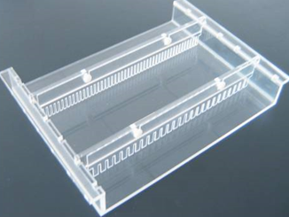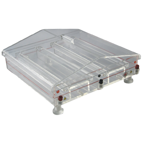 1 琼脂糖凝胶电泳 琼脂糖凝胶电泳:用琼脂糖凝胶作为支持物的电泳法,借助琼脂糖凝胶中的分子筛作用,核酸片段因为分子量不同,电泳速度有差异而分离。 电泳槽—一体注塑成型,结实抗摔 凝胶托盘—耐高温透紫外 电极架—可拆卸,可更换 铂金丝—加粗铂金丝 电极头—可兼容几乎所有电源 可一次最多做306个样品,专为多样品、高通量分析而研发 可用于Southern杂交、Northern杂交、RFLP等 支持8道和12道排枪高通量加样 推荐电源:BG-Power 600 2 免疫电泳、纸电泳、醋酸纤维素薄膜电泳 免疫电泳(immune electrophoresis)是将琼脂电泳和双向琼脂扩散结合起来,用于分析抗原组成的一种定性方法。 纸电泳是根据电泳现象在渗透了缓冲液的滤纸加上电场使物质移动的电泳法。也就是把样品以带状加在作为支持体的滤纸内来检测其移动和分离的方法。纸电泳是药典中推荐的电泳方法。 醋酸纤维薄膜电泳是以醋酸纤维薄膜为支持物的电泳方法,广泛用于血清蛋白,血红蛋白,球蛋白,脂蛋白,糖蛋 白,甲胎蛋白,类固醇激素及同工酶等的分离分析。 可用于纸电泳、醋酸纤维素薄膜电泳、免疫电泳 免疫电泳:可做1~20块载玻片 醋酸纤维素薄膜电泳:2×8cm,可做1~24条;7×9cm,可做1~6条;8×12cm,可做1~6条 3根电极1负2正,支持两组电泳实验 3 可见光透射电泳 可见光透射电泳:用琼脂糖凝胶作为支持物的电泳法,同时电泳槽下方有透射仪,上方有观察窗,可随时随地观察电泳条带。 蓝光光源,配合安全染料,健康环保 在电泳同时可对电泳进行实时观测 整套仪器可以进行拆分,可以一机三用 采用半导体发光技术,具有功耗低、产热少、寿命长等优点 百晶生物 深耕电泳领域16年! 更多相关产品信息可添加技术人员企业微信!