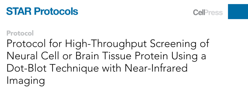 2020年9月18日,来自美国健康科学西部大学基础医学院的Glen E. Kisby教授在Cell杂志的STAR Protocol上发表了名为Protocol for High-Throughput Screening of Neural Cell or Brain Tissue Protein Using a Dot-Blot Technique with Near-Infrared Imaging的实验方法。该方法描述了如何从培养的神经细胞或者脑组织中提取蛋白,并利用dot-blot技术在LI-COR Odyssey的双色近红外荧光成像平台上对目标蛋白实现高通量筛选。值得一提的是,该方法允许在一个dot上同时鉴定两个目标蛋白。