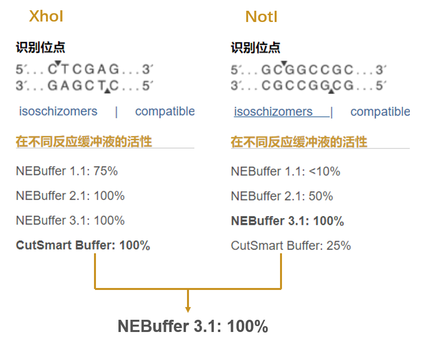 使用两种限制性内切酶同时切割载体或外源片段,不仅可以有效避免后续连接反应中的载体自连,还可以让外源片段按照自己想要的方向插入载体中,是一种常见的省时方案。要确立一个双酶切体系,需要考虑最适合使用的buffer、最适合使用的温度、酶切的先后顺序等问题。