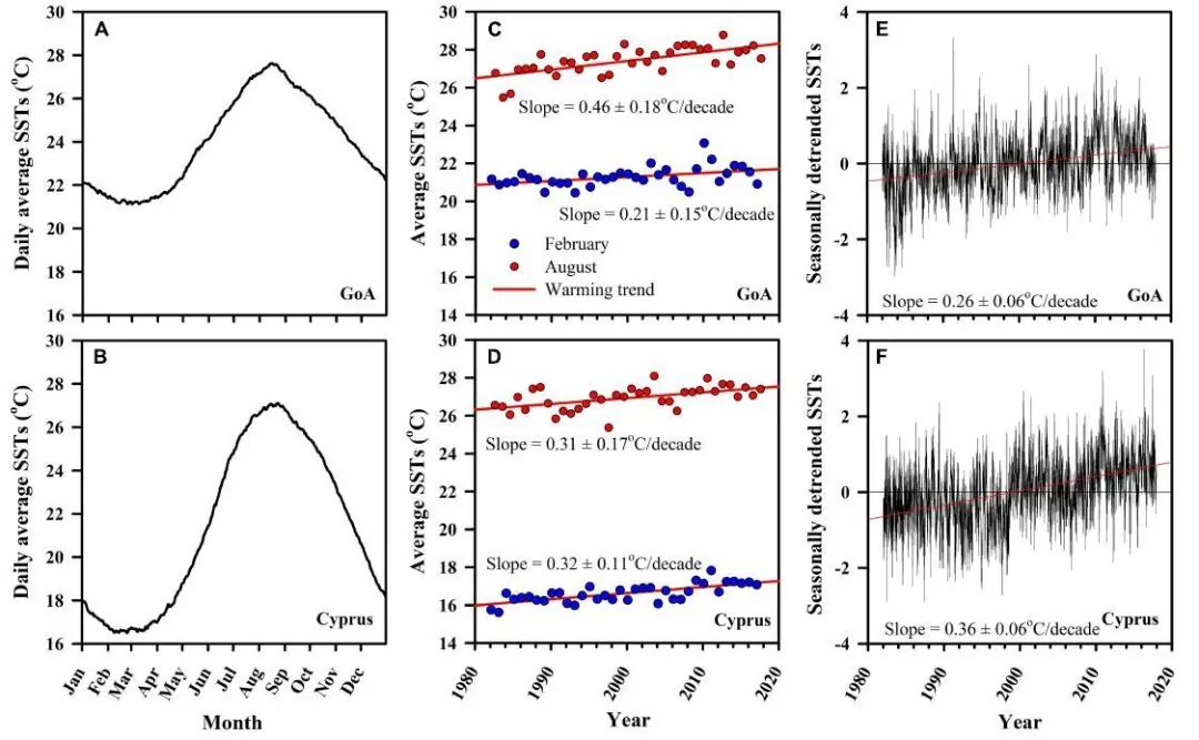 图4 收集地点从1982年至2017年期间的海洋表面温度(SSTs)的长期监测。