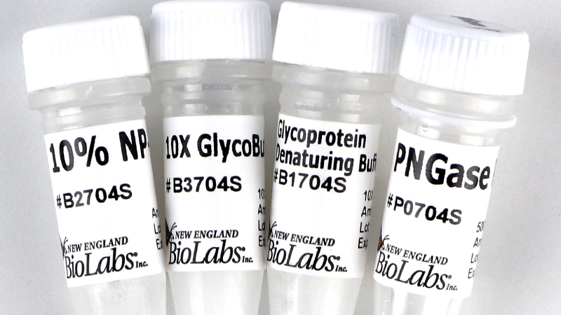 肽 N-糖苷酶 F,即 PNGase F,是一种酰氨酶,可以在 N-连接糖蛋白的高甘露糖、杂合和复合寡糖部分更内侧的 N-乙酰葡萄糖胺(GlcNAc)和天冬酰氨残基之间进行切割。PNGase F 还以不含甘油的形式提供,便于在 HPLC 方法中取得更佳效果。